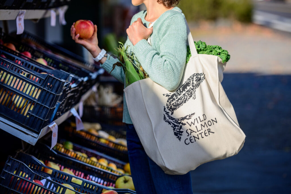 Want your own Ed Hepp work of art? Check out our gear store and get your very own Wild Salmon Center custom tote bag, mug, and clothing apparel featuring our keystone species mosaic.